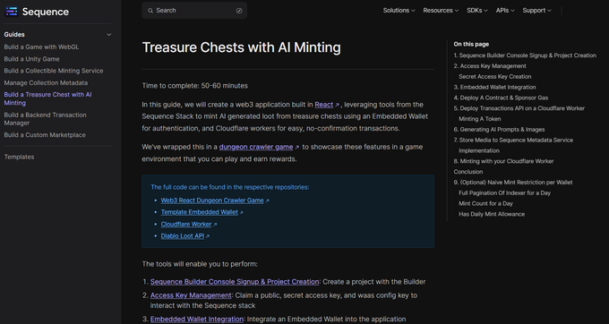 Weâve recently published a comprehensive walkthrough guide to help developers integrate a static HTML/JavaScript maze into a web3 game. In this guide, we will create a web3 application built in React, leveraging tools from the Sequence stack to mint AI-generated loot from treasure chests using an Embedded Wallet for authentication, and Cloudflare workers for easy, no-confirmation transactions.