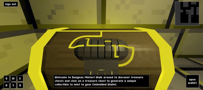 Login to Dungeon Minter using your Google or Apple authentication powered by Sequence Embedded Wallets. Go on an adventure and browse through our Dungeon Minter maze to find treasure chests.