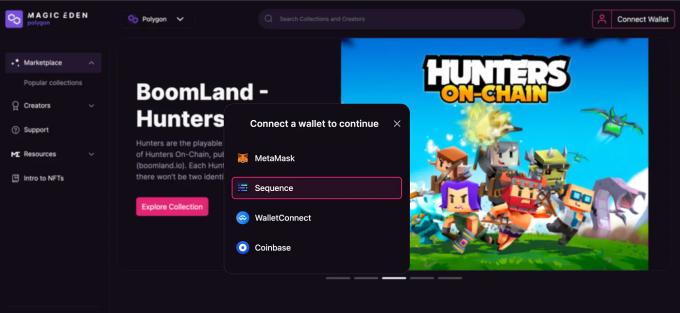 Polygon’s low-cost, high-speed, EVM-compatible chain enables an efficient NFT trading experience, making it a network of choice among game developers. The integration of Sequence Wallet complements Magic Eden’s focus on game creators building on Polygon. World-class game studios like BoomLand, the creator of Hunters On-Chain and Thought Farm, the creator of Sunflower Land, are already building on Polygon with Sequence.